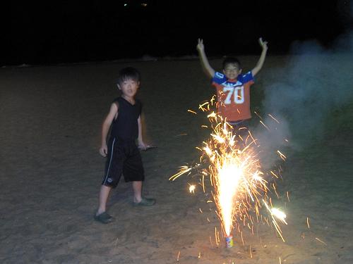浜辺で花火