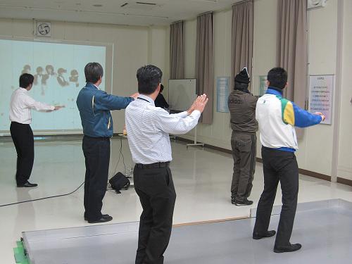 1月14日 遠石会館にて 徳山商工会議所 青友会の新年会が行われます 我ら 親睦委員会が 司会進行を担当 宴を盛り上げようと・・・ 選ばれた?男性会員が ダンスレッスン中! キット 皆さん お正月もご自宅で各自 練習されてたんでしょうね~ ん なんだか 皆さん動きがバラバラですが・・・ 「ナ~ンバ ワ~ン」 キメポーズのはずなんですが・・・ だいぶ 揃ってきましたょ 楽しそう 「ドッキュン」 お気に入りのポーズ