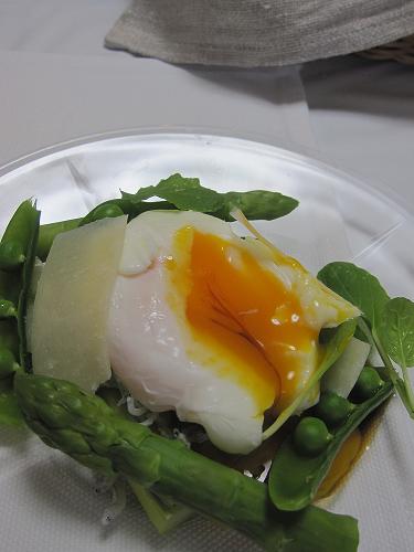 「アスパラとスナップエンドウのポーチドエッグソース」